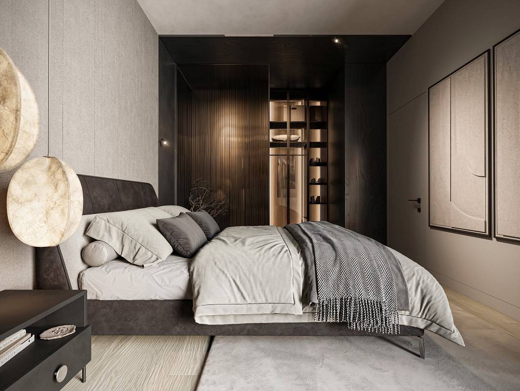 Sypialnia jest przestrzenią wyciszenia, regeneracji i odcięcia od bodźców, które organizują dzień. Praca opiera się na napięciu, koncentracji i aktywności, która w naturalny sposób zaburza ten stan. Połączenie tych dwóch funkcji w jednym wnętrzu nie jest więc decyzją estetyczną ani wyłącznie funkcjonalną. Jest decyzją o zarządzaniu napięciem pomiędzy dwoma przeciwstawnymi sposobami użytkowania przestrzeni.